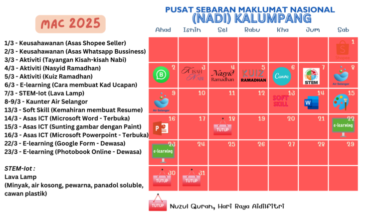 JADUAL KELAS/LATIHAN BULAN MAC 2025