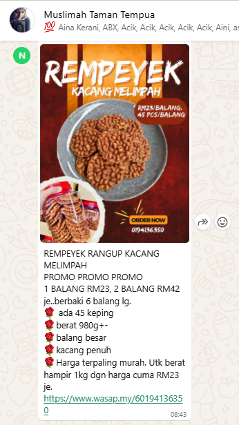 Puan Nadia merupakan usahawan yang menawarkan jualan rempeyek kacang melimpah. Maklumat lanjut sila layari: