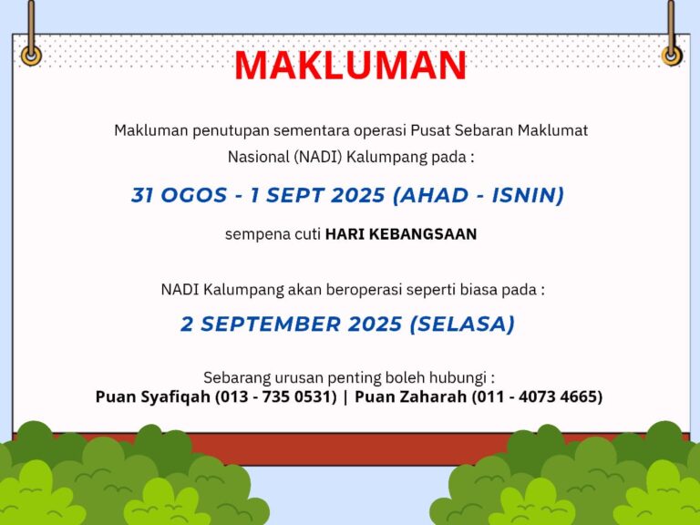 Penutupan Sementara NADI Kalumpang Sempena Hari Kebangsaan 2024